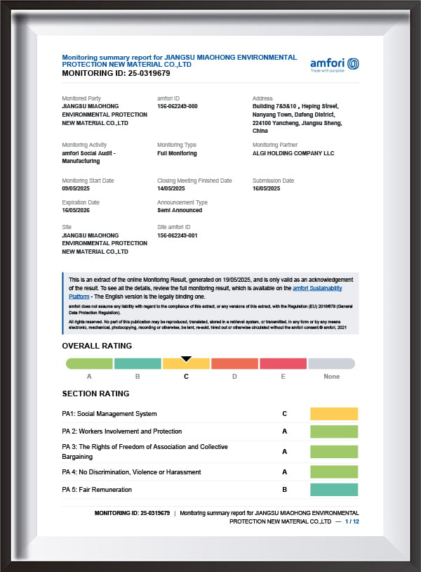 Our factory builds a unique processing and quality control system after a dozen years of exploration and practice. Our factory has already passed ISO 9001 quality and BSCI audits.