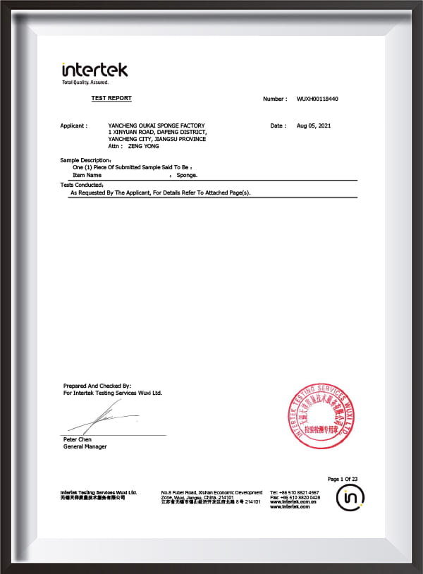 Produits d'éponge Yancheng Oukai Co., Ltd.