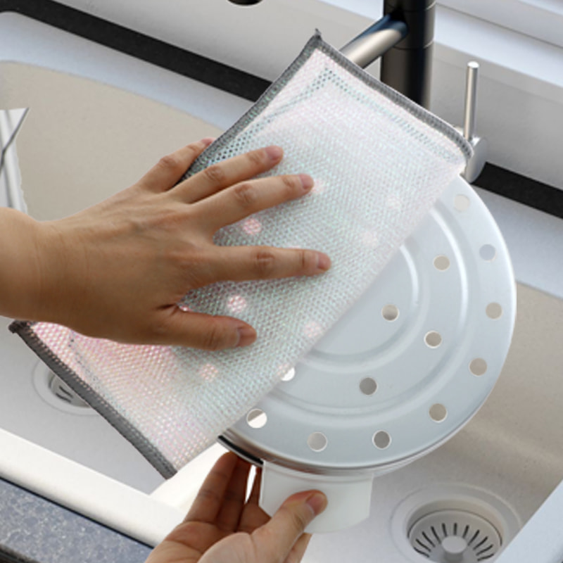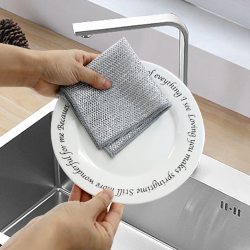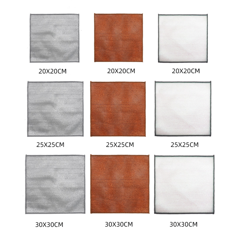 Torchon en fil d'argent double face, fabriqué en soie bronze, il est très cher ; Pas de revêtement, pas de poudre, pas de décoloration ; Pas d'huile, pas d'huile, fort grattage mais aucun dommage à la batterie de cuisine. Fabriqué en soie colorée, il est gras et non collant, avec une haute valeur d'apparence ; Pas de revêtement, pas de chute de poudre, pas de décoloration ; Fort grattage mais aucun dommage à la batterie de cuisine.