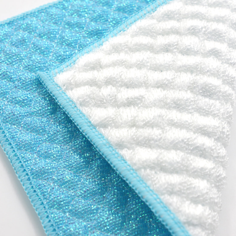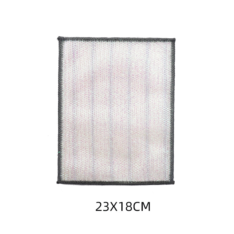 Chiffon à récurer en fibre de bambou en soie colorée, un côté est un chiffon de nettoyage coloré avec une forte capacité de grattage, et l'autre côté est un chiffon en fibre de bambou, qui répond à la double fonction de grattage et de récurage d'un côté ; Il est sans huile et a une forte absorption d'eau. Il est fait de soie colorée, avec une apparence élevée et un traitement Zou sur la surface, ce qui permet au chiffon de nettoyage en soie colorée avec un fort pouvoir de grattage d'avoir une force de friction plus forte, mais ne blesse pas la batterie de cuisine ; Il a un bon effet nettoyant sans élimination d’huile.