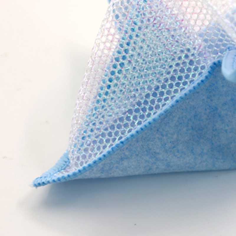 Un côté est en nylon mélangé de polyester coloré avec une forte capacité de grattage, et l'autre côté est en tissu maillé