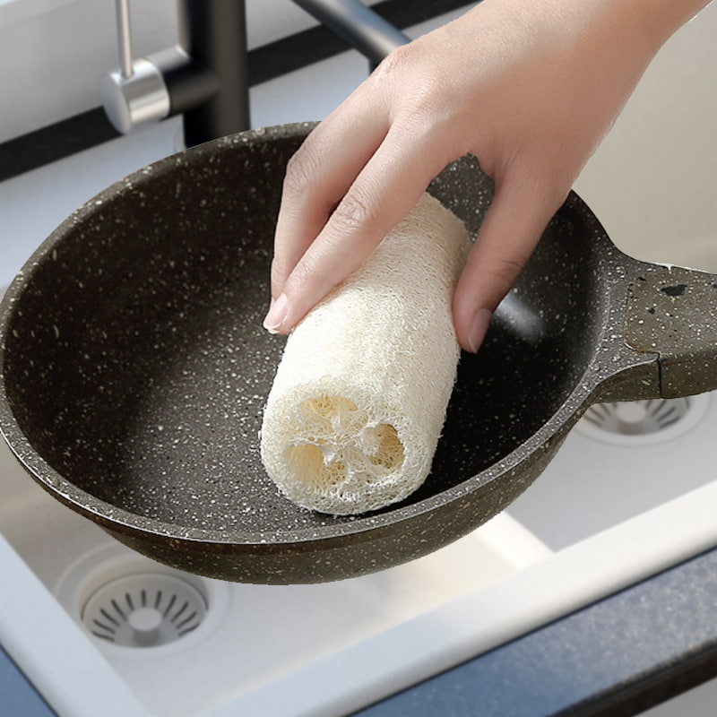 La structure fibreuse en forme de nid d'abeille à l'intérieur de l'éponge luffa peut fortement adsorber l'huile. Lorsqu’elles sont exposées à l’eau, les fibres se dilatent pour former d’innombrables petits pores qui peuvent encapsuler et éliminer les taches d’huile. Il n'est pas nécessaire de compter sur un détergent.