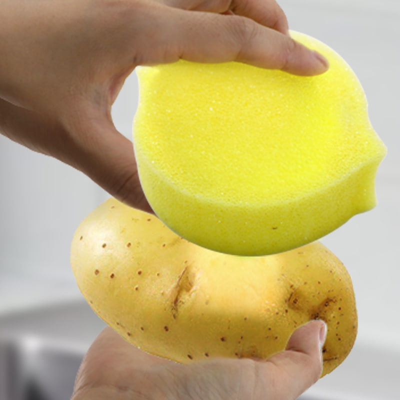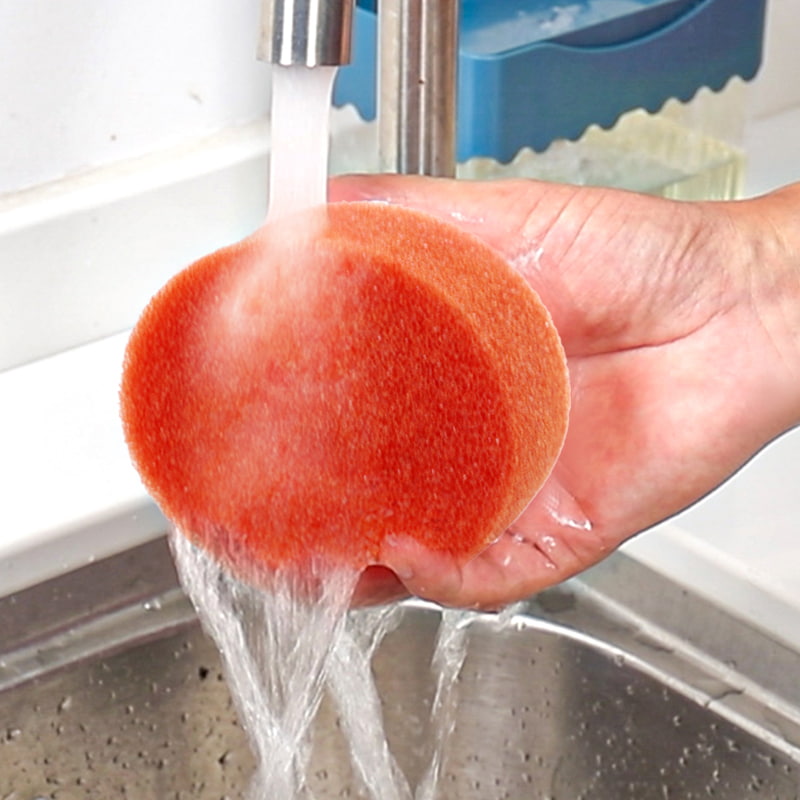 Adoucit lorsqu'elle est exposée à l'eau tiède : lorsque la température de l'eau est supérieure à 32 ℃, l'éponge devient rapidement douce et peut nettoyer en douceur les surfaces délicates (telles que les revêtements antiadhésifs pour casseroles, la verrerie, les fruits), en évitant les rayures.